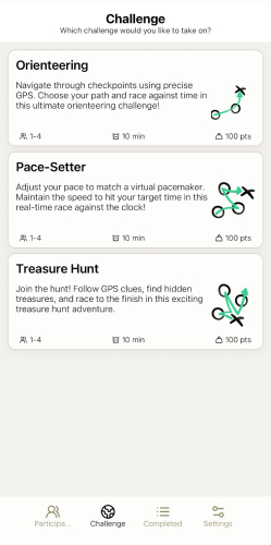 Die App ist selbsterklärend und intuitiv für Lehrpersonen wie Schüler/innen und eignet sich für Schulsport, bewegten Unterricht, Sporttage, Klassenlager, Ski-OL oder Schnitzeljagden.